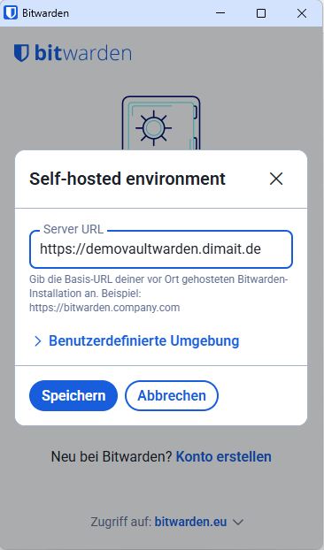 Auch wenn Sie Vaultwarden als selbst gehostete Variante nutzen, funktionieren alle offiziellen Bitwarden-Clients vollstĂ€ndig â Sie mĂŒssen lediglich in den Einstellungen die Server-URL anpassen (diese erhalten Sie von uns, falls erforderlich).